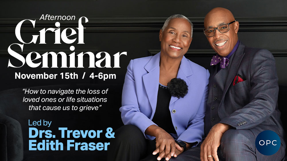 Join us on Saturday, November 15th for an afternoon Grief Seminar:  How to navigate the loss of loved ones or life situations that cause us to grieve with Drs. Trevor & Edith Fraser .