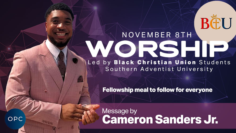 Join us for a special Divine Worship service with worship led by Black Christian Union Students from Southern Adventist University and sermon by Cameron Sanders Jr. Fellowship meal to follow for everyone!